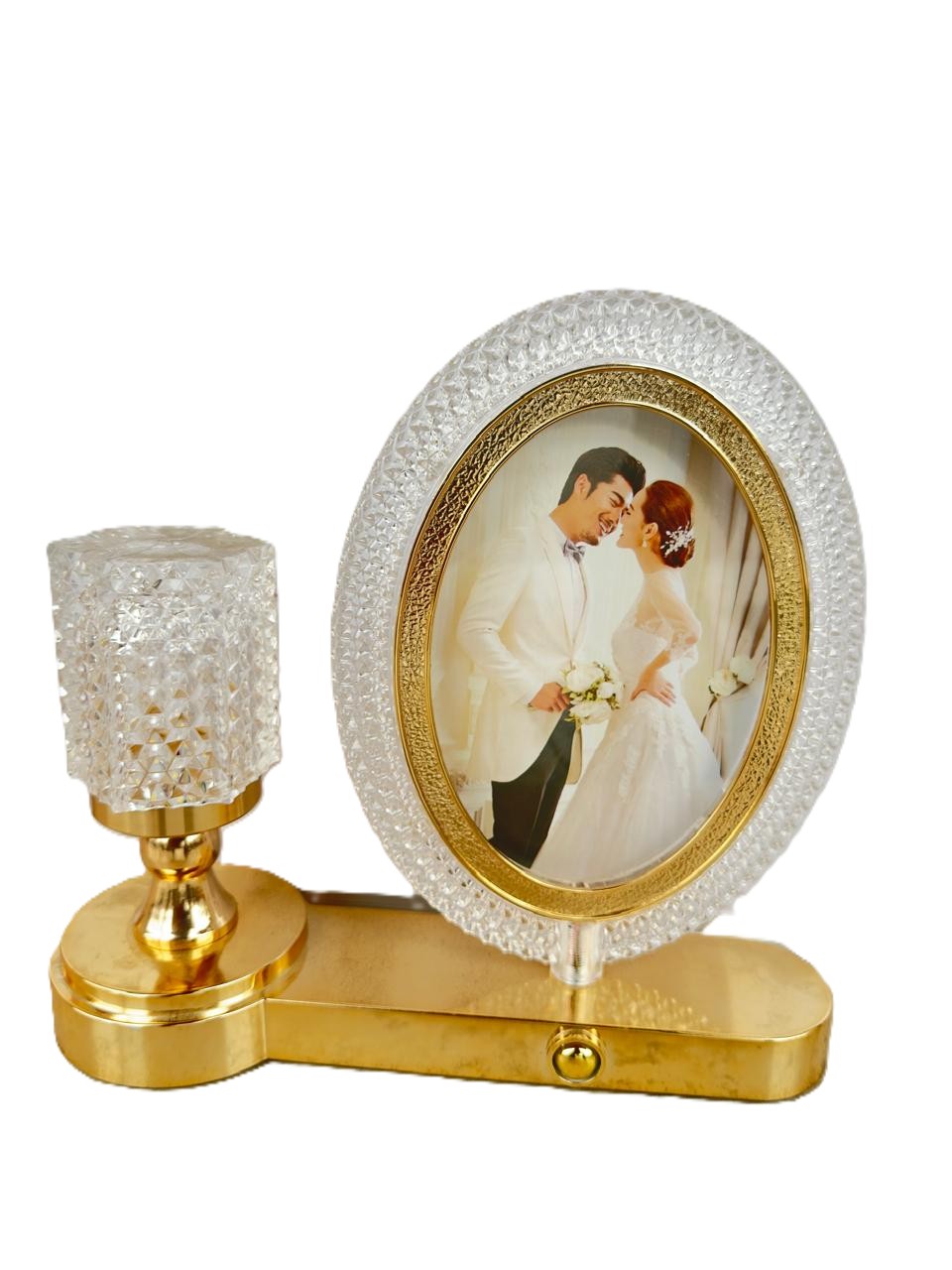 Stylish LED circle stand for photo albums with soft side lighting effect.